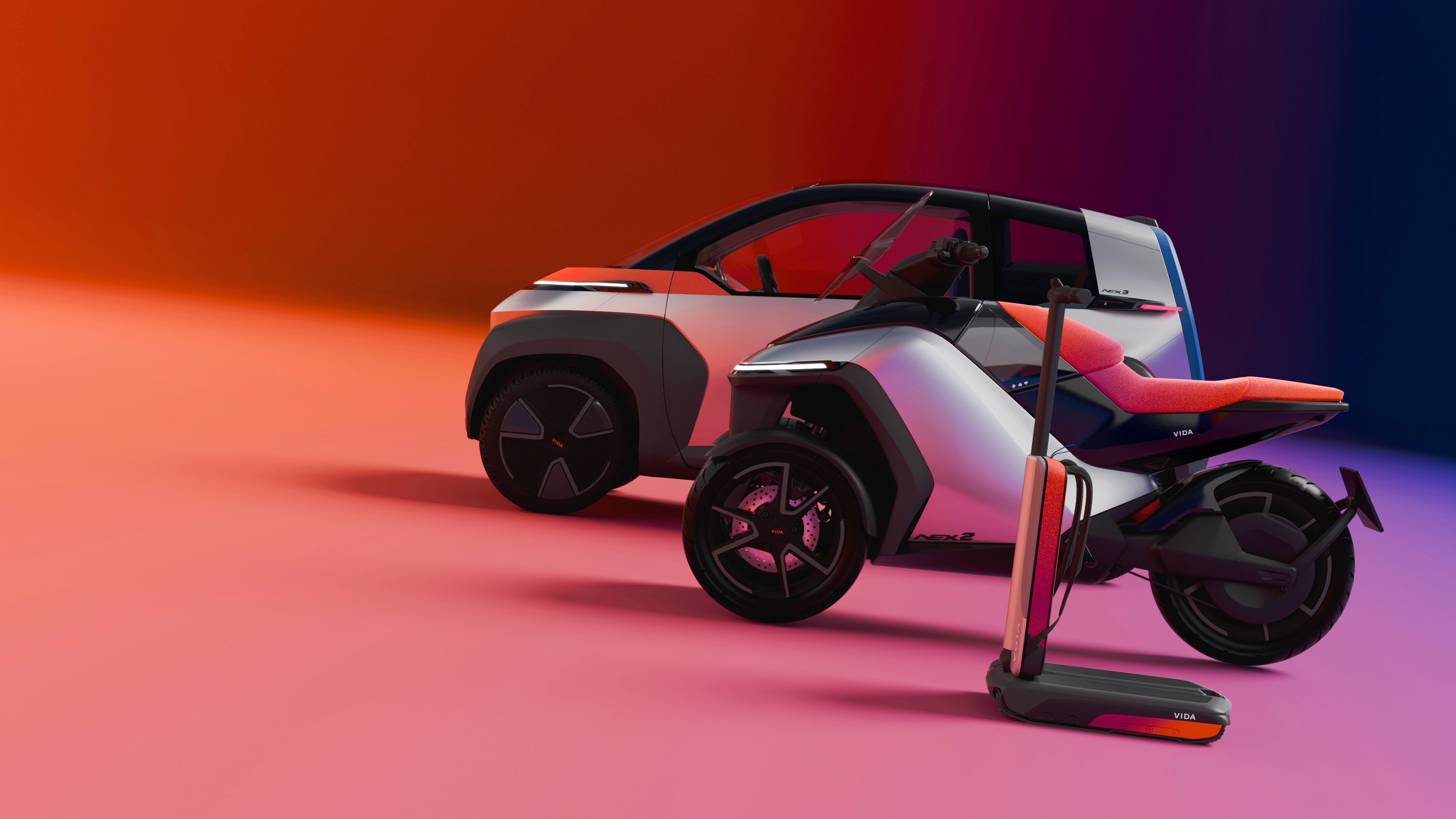 VIDA explores how mobility can adapt to changing urban and suburban lifestyles. Rather than relying on a single vehicle, the project proposes a system of solutions designed to cover different moments of a journey.